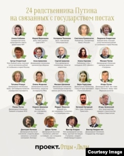 24 члена семьи Путина во власти – это, вероятно, рекорд для российских правителей за последние 100 лет, отмечает "Агентство".