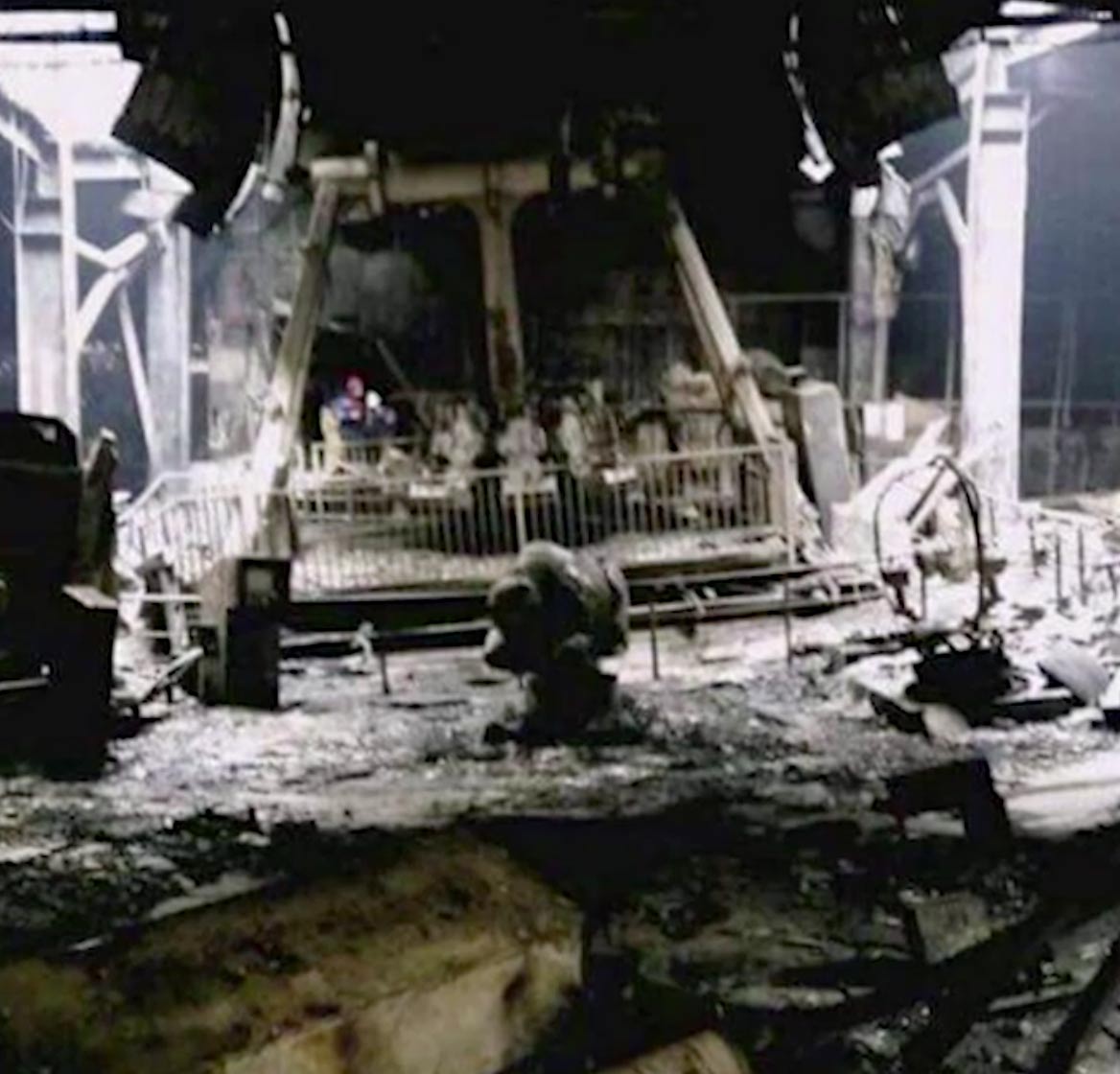 Зона с игровыми автоматами. Над ней, предположительно, находилась камера наблюдения, заснявшая момент начала пожара. За стеклянной стеной – ледовый каток.